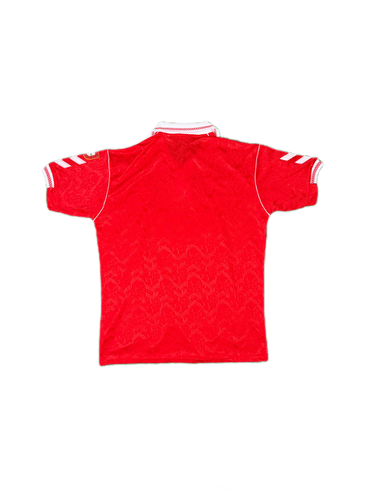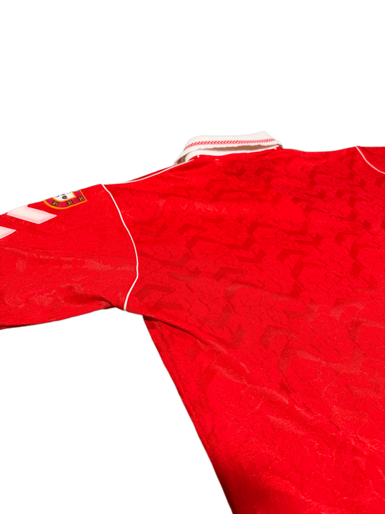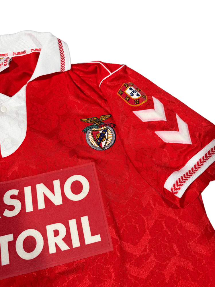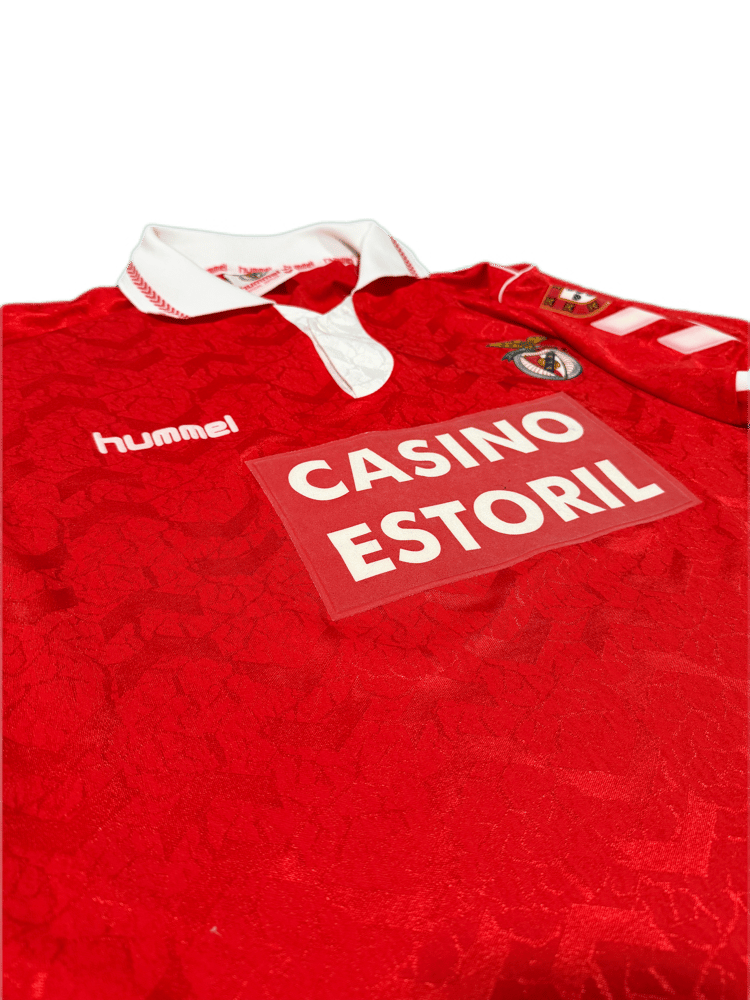 Camiseta de fútbol retro original del Benfica, temporada 1992-1993, de la marca Hummel. Un clásico del fútbol europeo de los años 90, con el diseño característico de la marca danesa.
