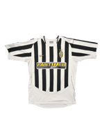 El diseño clásico en blanco y negro representa a la perfección la identidad del club italiano, convirtiendo esta camiseta en una pieza muy reconocible y valorada dentro del coleccionismo.