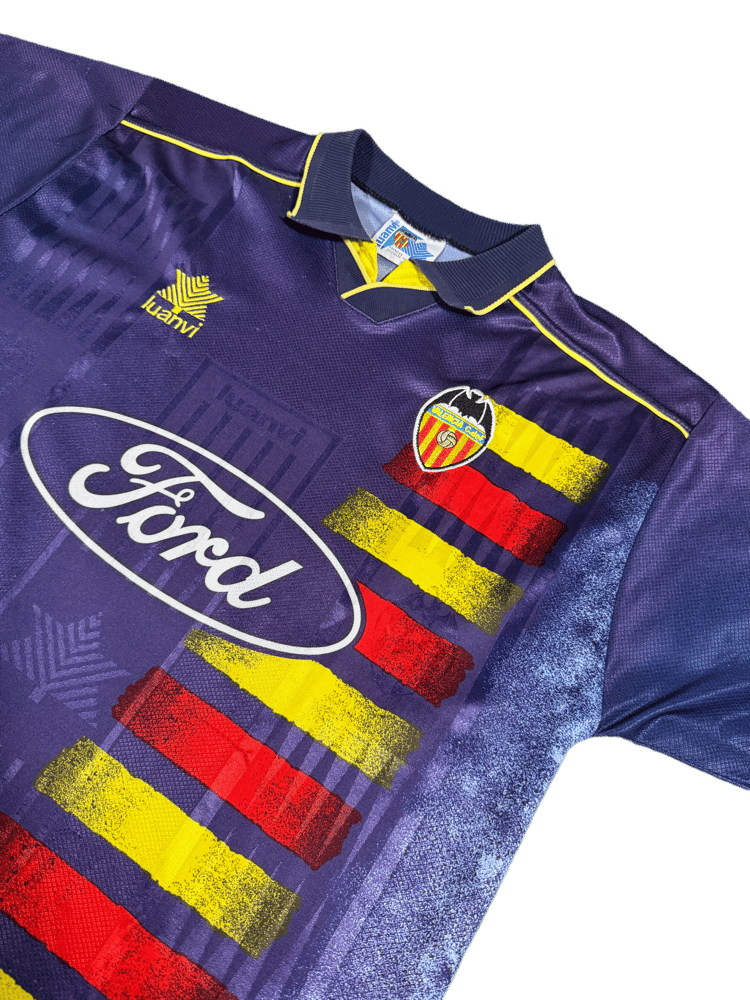 Camiseta de fútbol retro original del Valencia CF, segunda equipación de la temporada 1996-1997, de la marca Luanvi.