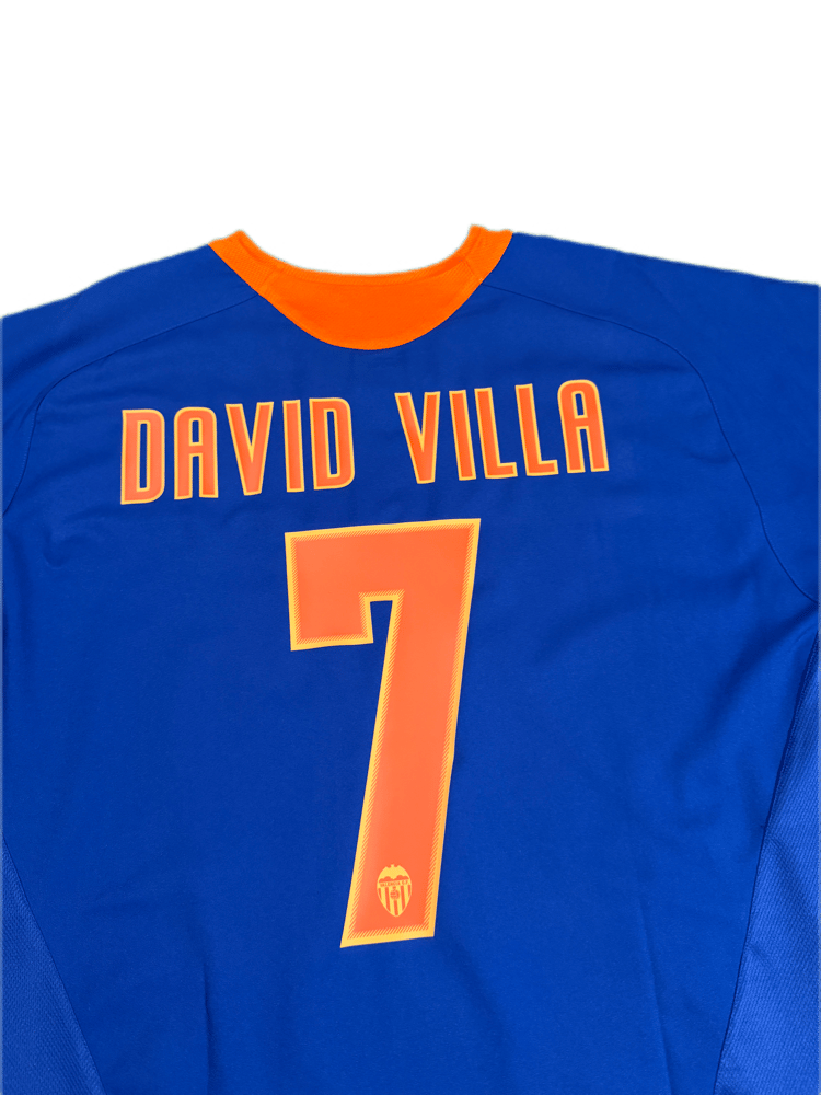 Camiseta de fútbol retro original de David Villa en el Valencia CF, segunda equipación de la temporada 2005-2006, de la marca Nike.